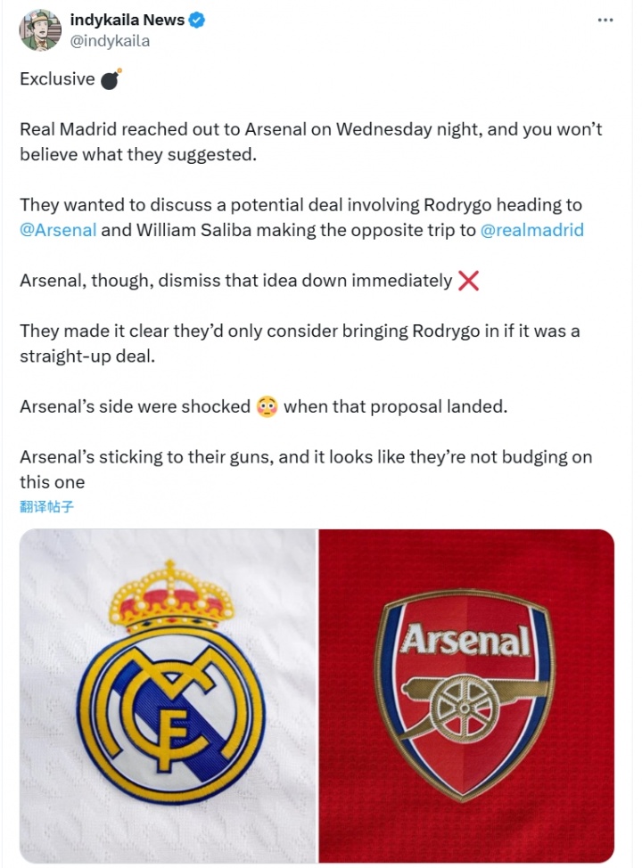 yl23455永利最新网址-你信吗?绿帽哥:皇马提议用罗德里戈换萨利巴,遭阿森纳立即拒绝 byxiaoqiao 发表于2025年08月20日 据知名转会博主绿帽哥“Indykalia News”独家消息,皇马周三晚与阿森纳取得了联系,提议用罗德里戈交换萨利巴,这一提议被阿森纳立即拒绝。Indykalia News独家报道:皇马周三晚上与阿森纳联系,他们想讨论一项潜在交易,用罗德里戈交换萨利巴。阿森纳立即拒绝了这一提议。他们明确表示,他们只会考虑直接交易以引进罗德里戈。阿森纳方面对皇马的提议感到震惊。阿森纳将坚持自己的立场,看起来并不会在这件事情上让步。 你可能感兴趣的内容 上一篇文章 yl23455永利官网-恩里克:我来巴黎的目标就是创造历史,我们正在努力寻求卫冕欧冠 发表于2025年08月20日 byxiaoqiao 查看文章 下一篇文章 【中超联赛第21轮】浙江队vs上海申花录像回放在线观看(2025年08月16日) 发表于2025年08月20日 byxiaoqiao 查看文章 你可能会喜欢